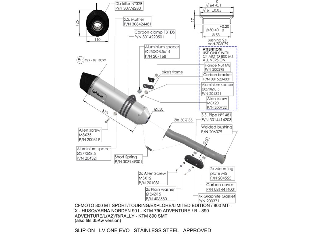 Výfuk LEO VINCE LV ONE EVO / CF MOTO 800 MT - TOURING / SPORT / EXPLORE / 800 MT-X / (22-26)