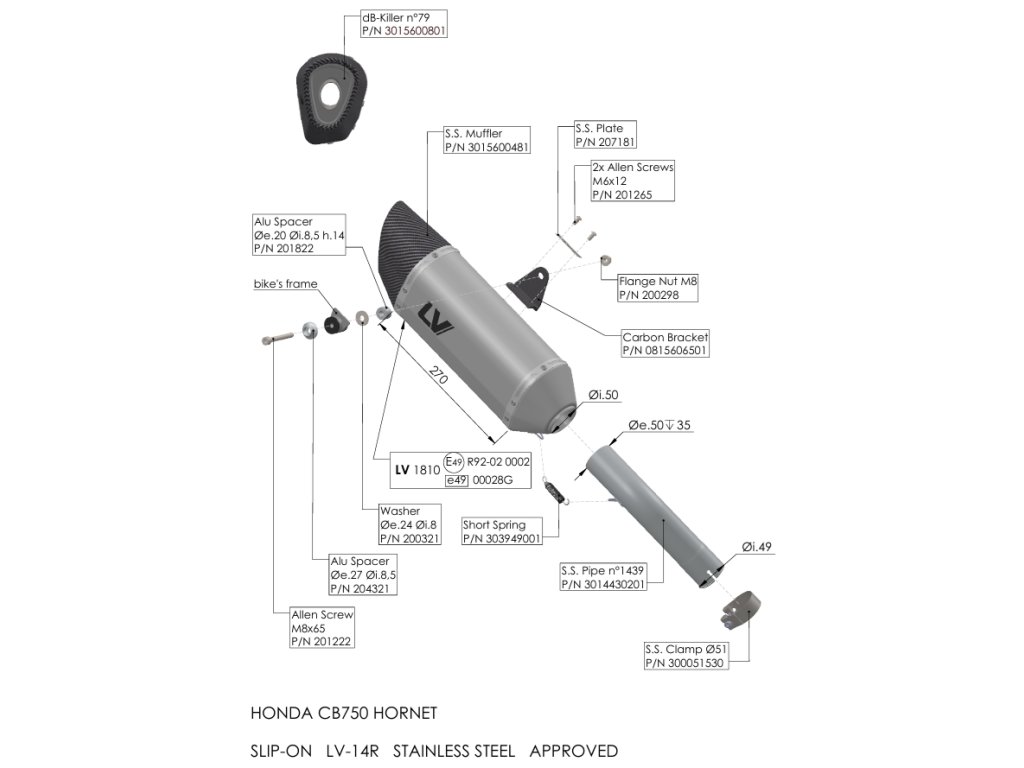 Laděný výfuk LEO VINCE LV-14 R INOX s propojovacím mezisvodem a kompletním instalačním setem.