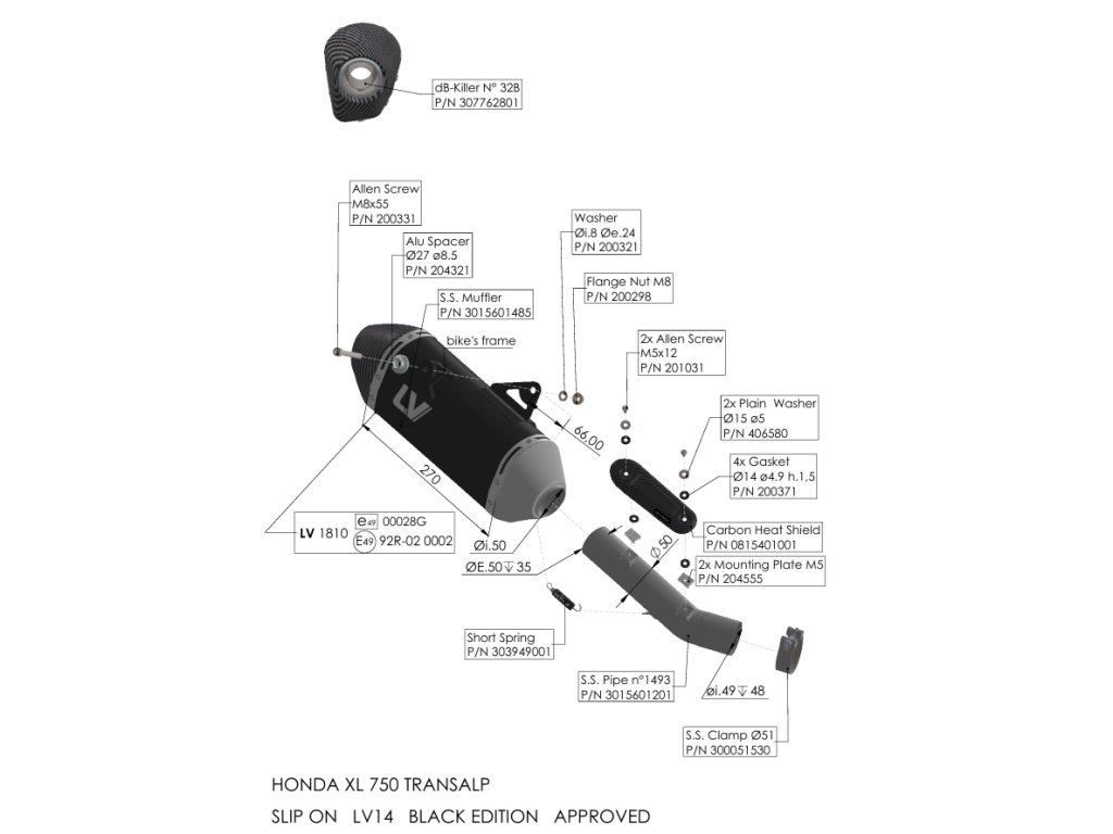 Výfuková koncovka LEO VINCE LV-14 BLACK EDITION s propojovacím mezisvodem a kompletním instalačním setem.
