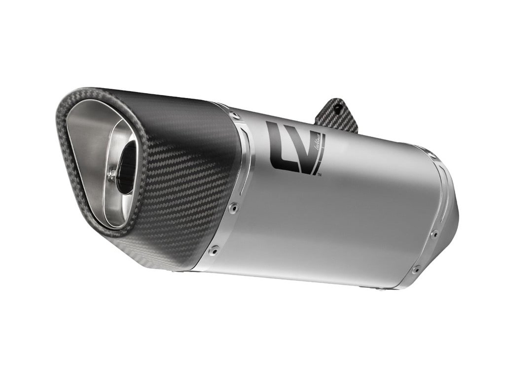 Laděný výfuk LEO VINCE LV-14 R INOX s karbonovým zakončením, propojovacím mezisvodem a kompletním instalačním setem.