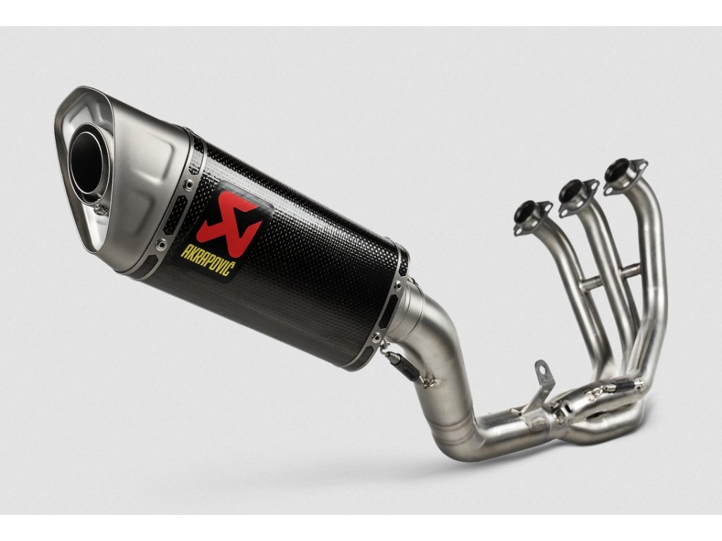 Kompletní výfukový systém Akrapovič Karbon Racing ( bez homologace ) s kompletním nerezovým výfukovým svodem a montážním setem.