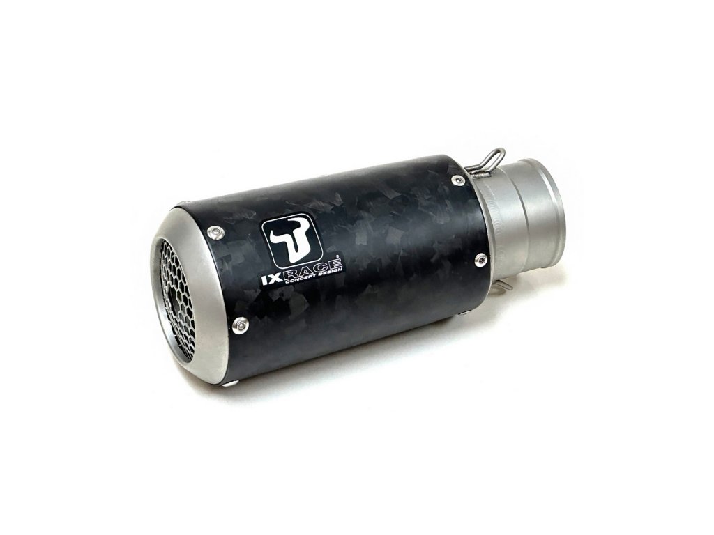 Kompletní výfukový systém IXRACE MK2 GP KARBON s kompletním nerezovým výfukovým svodem bez katalyzátoru a montážním setem.