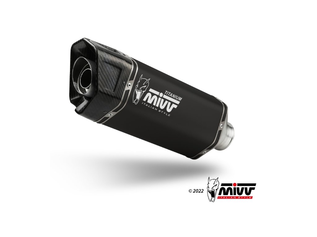Laděný výfuk MIVV SR-1 TITAN NERO s propojovacím mezisvodem a kompletním montážním setem.