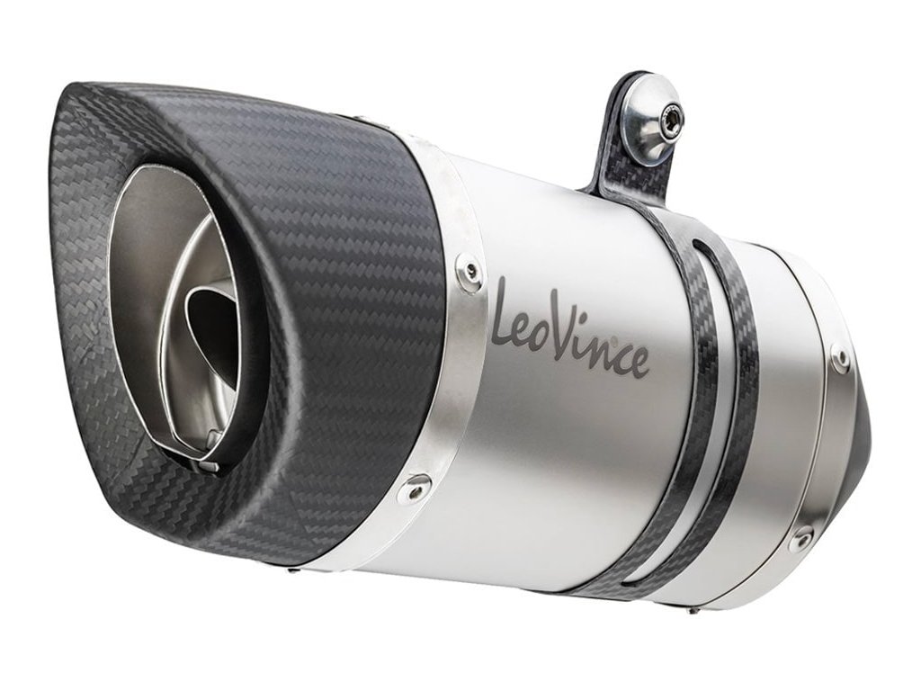 Laděný výfuk LEO VINCE LV PRO INOX s karbonovým zakončením, propojovacím mezisvodem a kompletním instalačním setem.