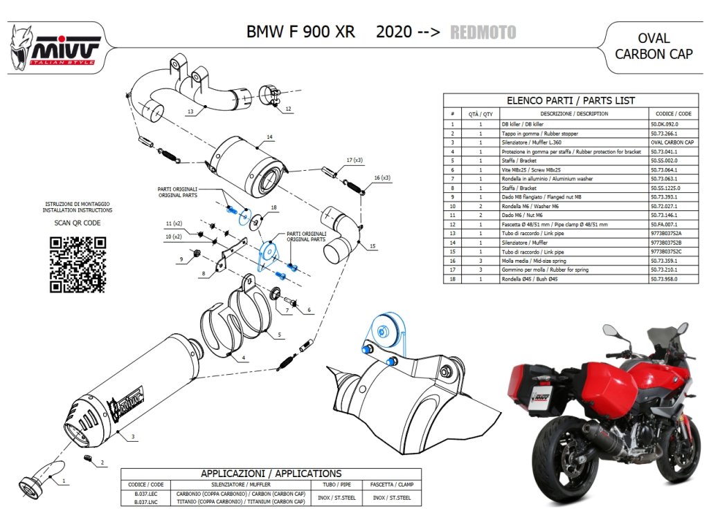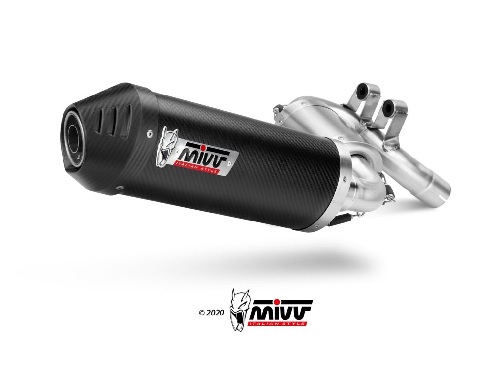 Laděný výfuk MIVV KARBON OVÁL s propojovacím mezisvodem a kompletním instalačním setem.