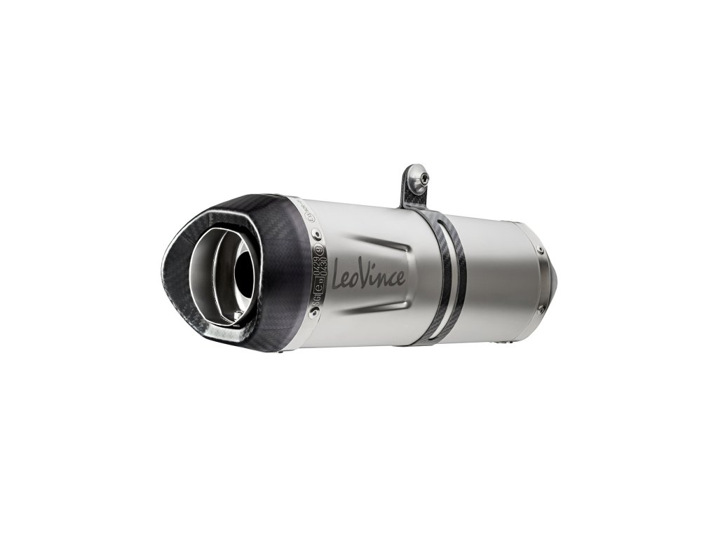 Výfukový systém LEO VINCE LV ONE EVO INOX s kompletním nerezovým výfukovým svodem bez katalyzátoru a montážním setem.