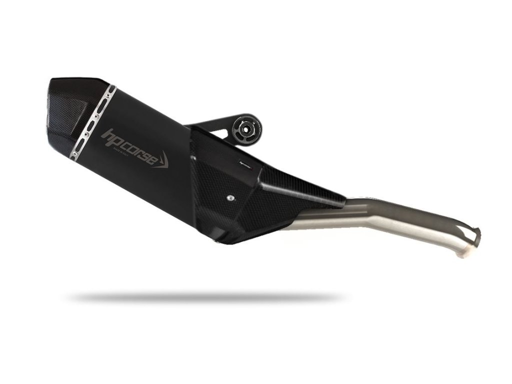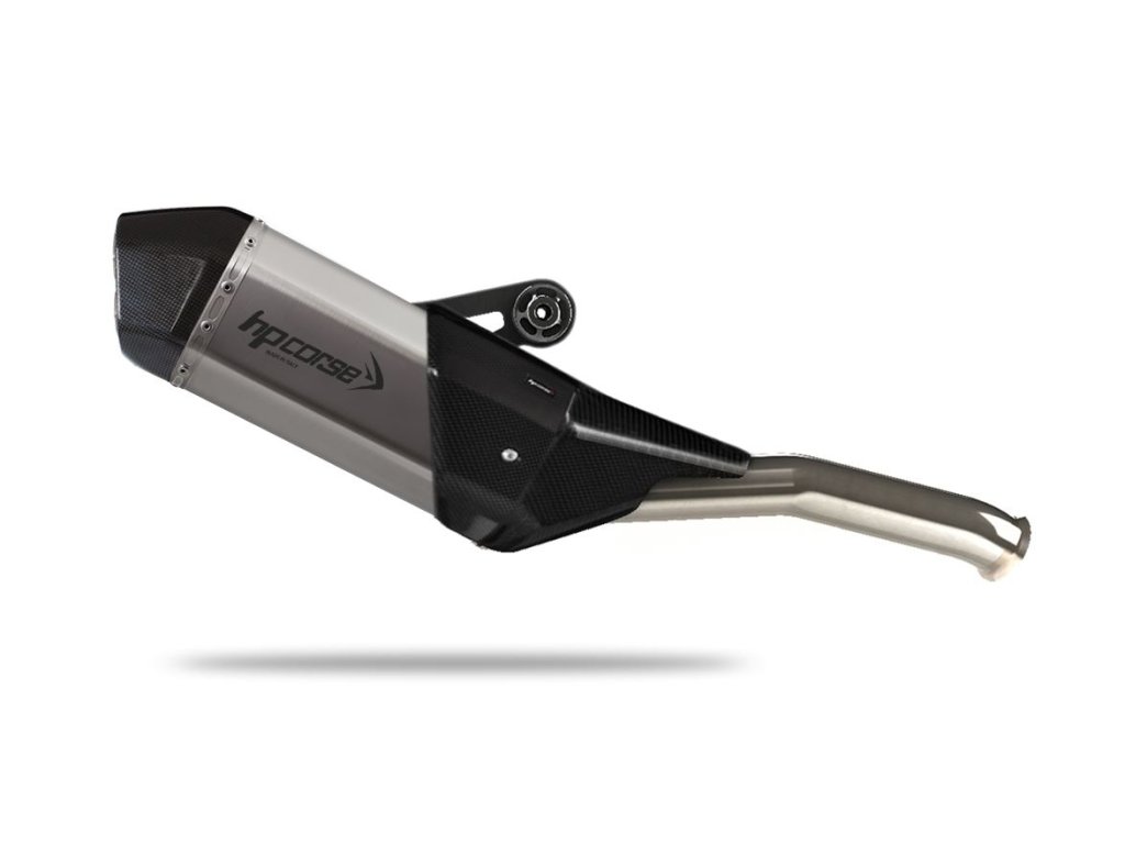 Laděný výfuk HP CORSE SPS CARBON SHORT SATIN s propojovacím mezisvodem a kompletním instalačním setem.