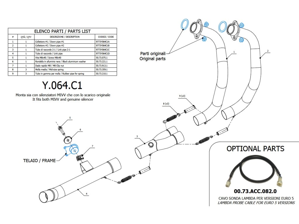 Kompletní nerezové výfukové svody MIVV bez katalyzátoru.