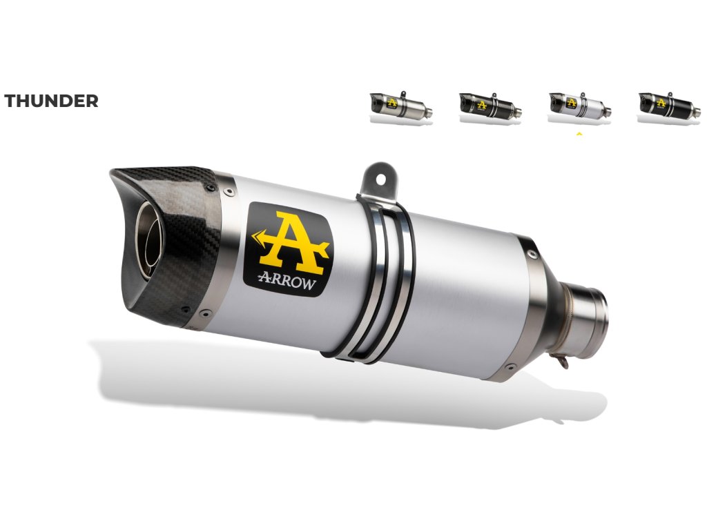 Výfukový systém ARROW THUNDER ALUMINIUM s výfukovým svodem bez katalyzátoru a kompletním montážním setem.