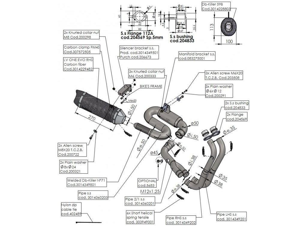 Výfukový systém LEO VINCE LV ONE EVO KARBON s kompletním nerezovým výfukovým svodem a montážním setem.