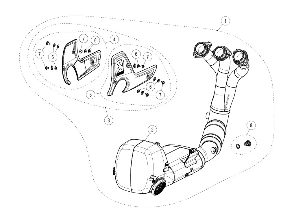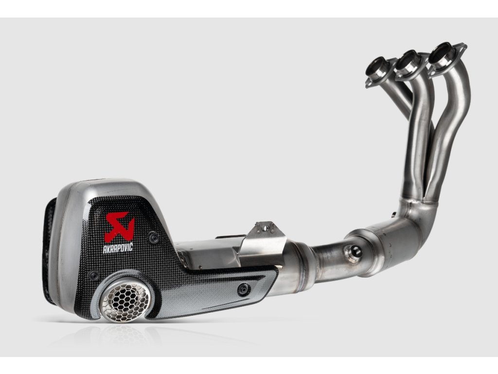 Tento výfuk, inspirovaný konceptem představeným na veletrhu EICMA v roce 2024, byl navržen tak, aby dokonale ladil s liniemi motocyklu. Je vyroben z jednoho kusu vysoce kvalitní nerezové oceli a tvarován pomocí špičkové technologie, přičemž katalyzátor je navařen uvnitř tlumiče. Je zakončen dvěma ručně vyrobenými kryty z karbonových vláken, které mají dvojitý výstup s plástvovou ochranou výfuku a červeno-bílým logem Akrapovič.
