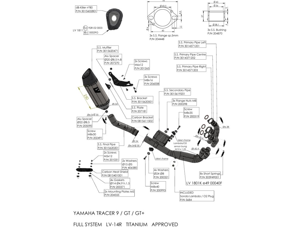 Výfukový systém LEO VINCE LV-14 R TITAN s kompletním nerezovým výfukovým svodem a montážním setem.