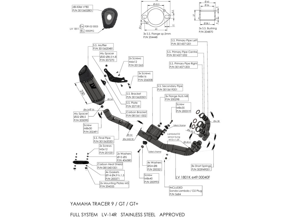 Výfukový systém LEO VINCE LV-14 R INOX s kompletním nerezovým výfukovým svodem a montážním setem.
