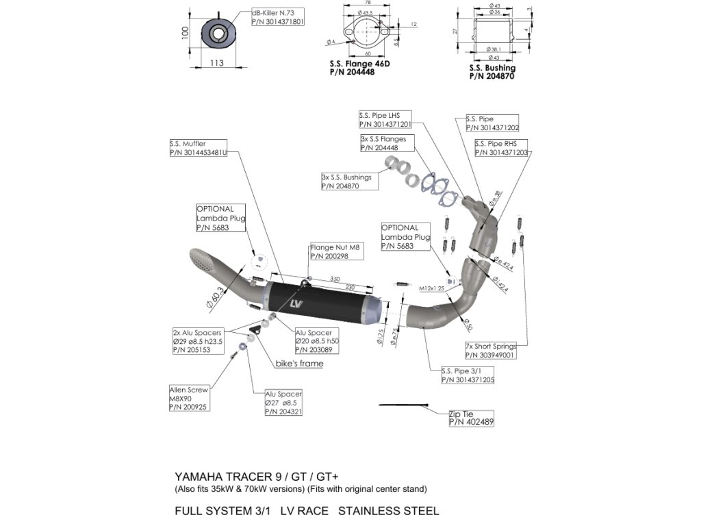 Výfukový systém LEO VINCE LV RACE s kompletním nerezovým výfukovým svodem a montážním setem.
