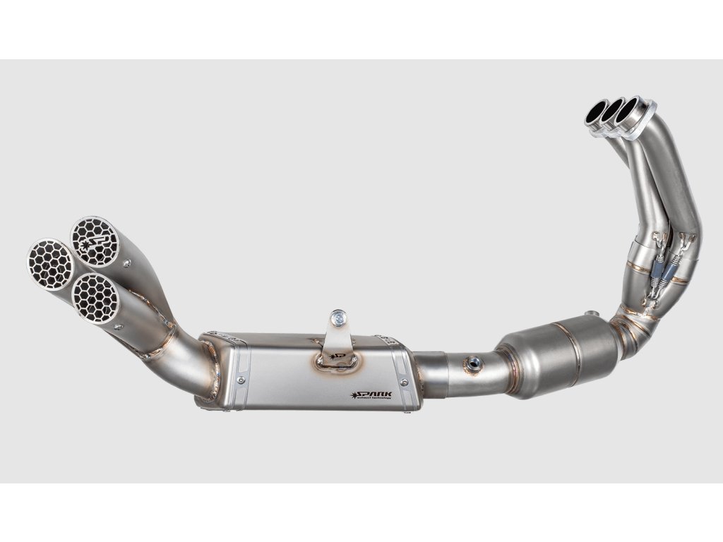 Výfukový systém SPARK TRIADE s kompletním nerezovým výfukovým svodem a montážním setem.